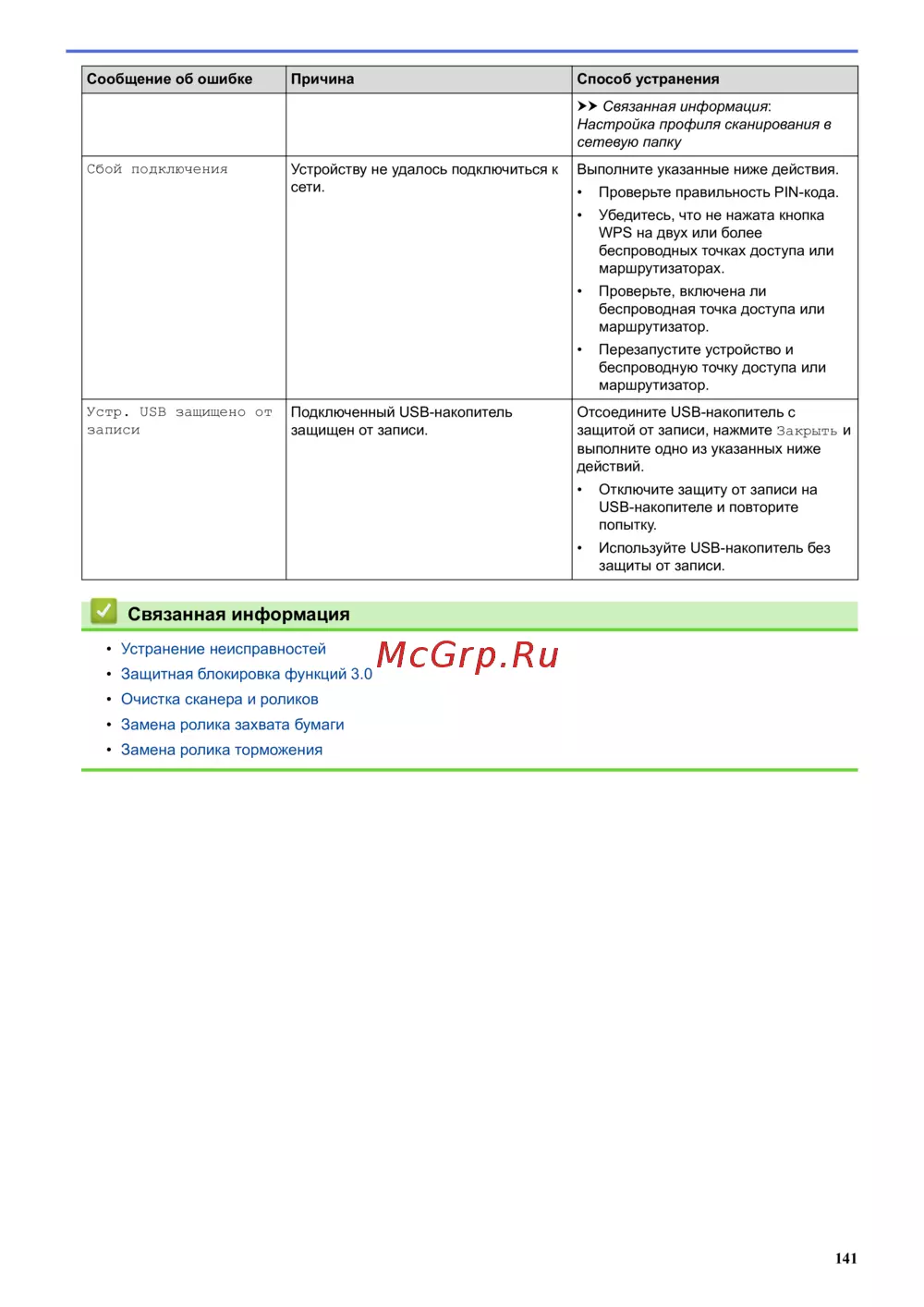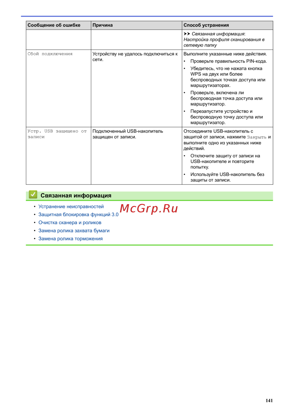 Brother ADS-2200 — устранение ошибок подключения и защиты USB-накопителей [145/215]