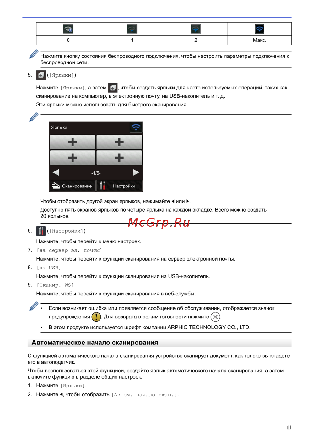 Brother ADS-2200 — настройка беспроводного подключения и ярлыков для сканирования [15/215]