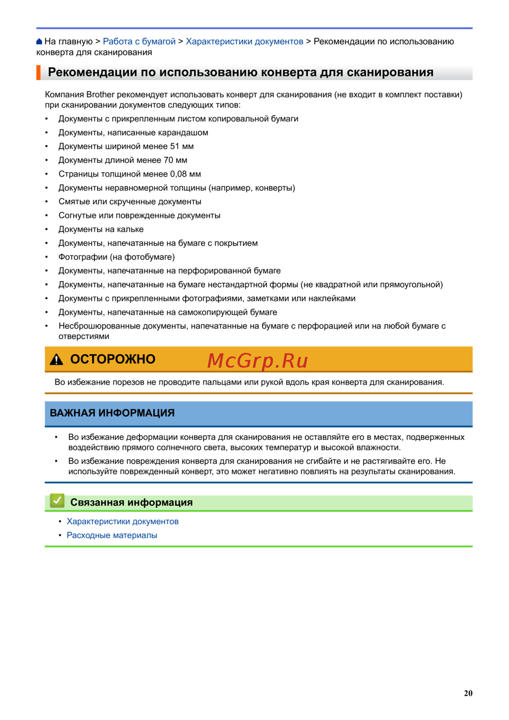 Компания Brother рекомендует использовать конверт для сканирования (не входит в комплект поставки)