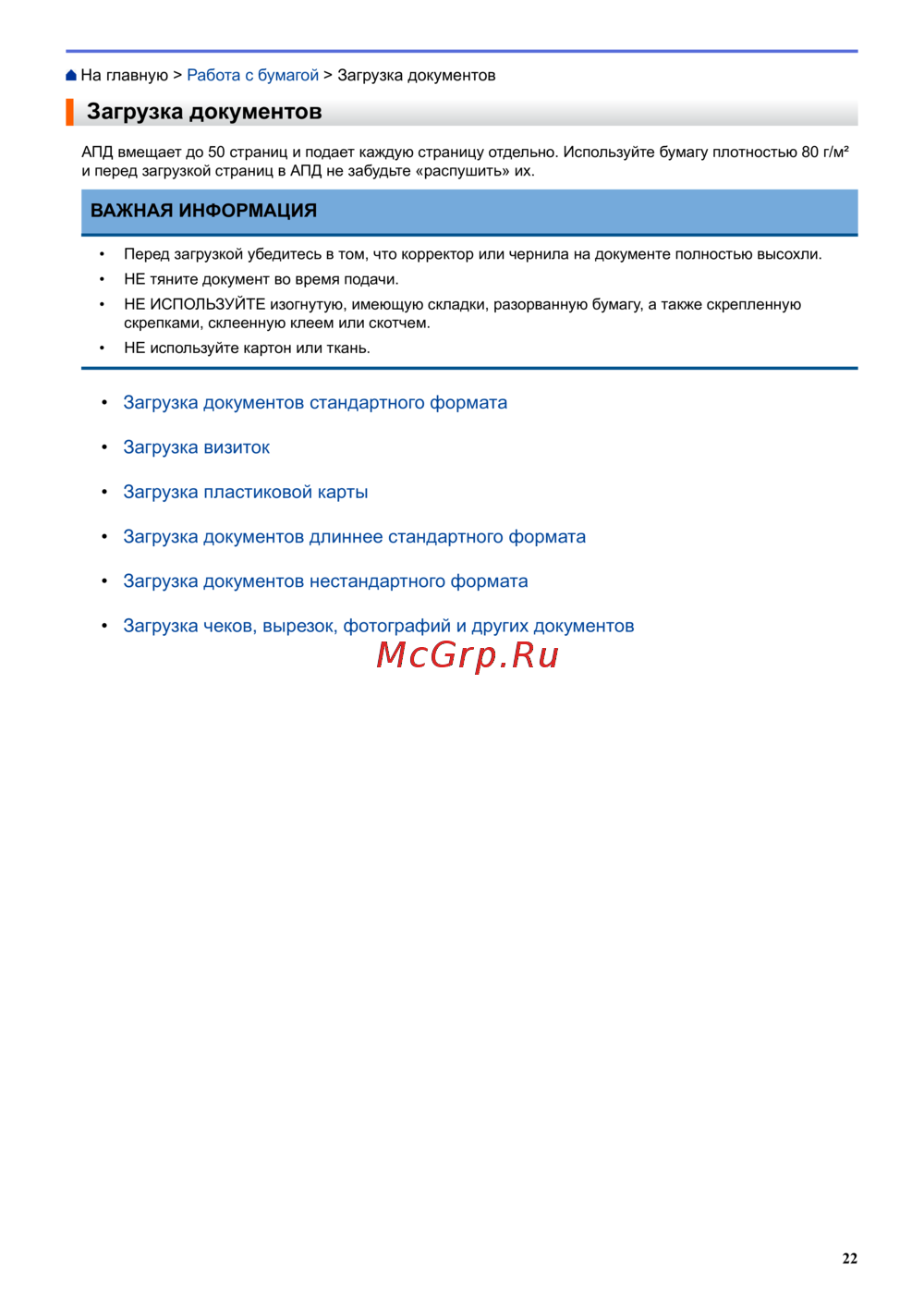 АПД вмещает до 50 страниц и подает каждую страницу отдельно. Используйте бумагу плотностью 80 г/м²