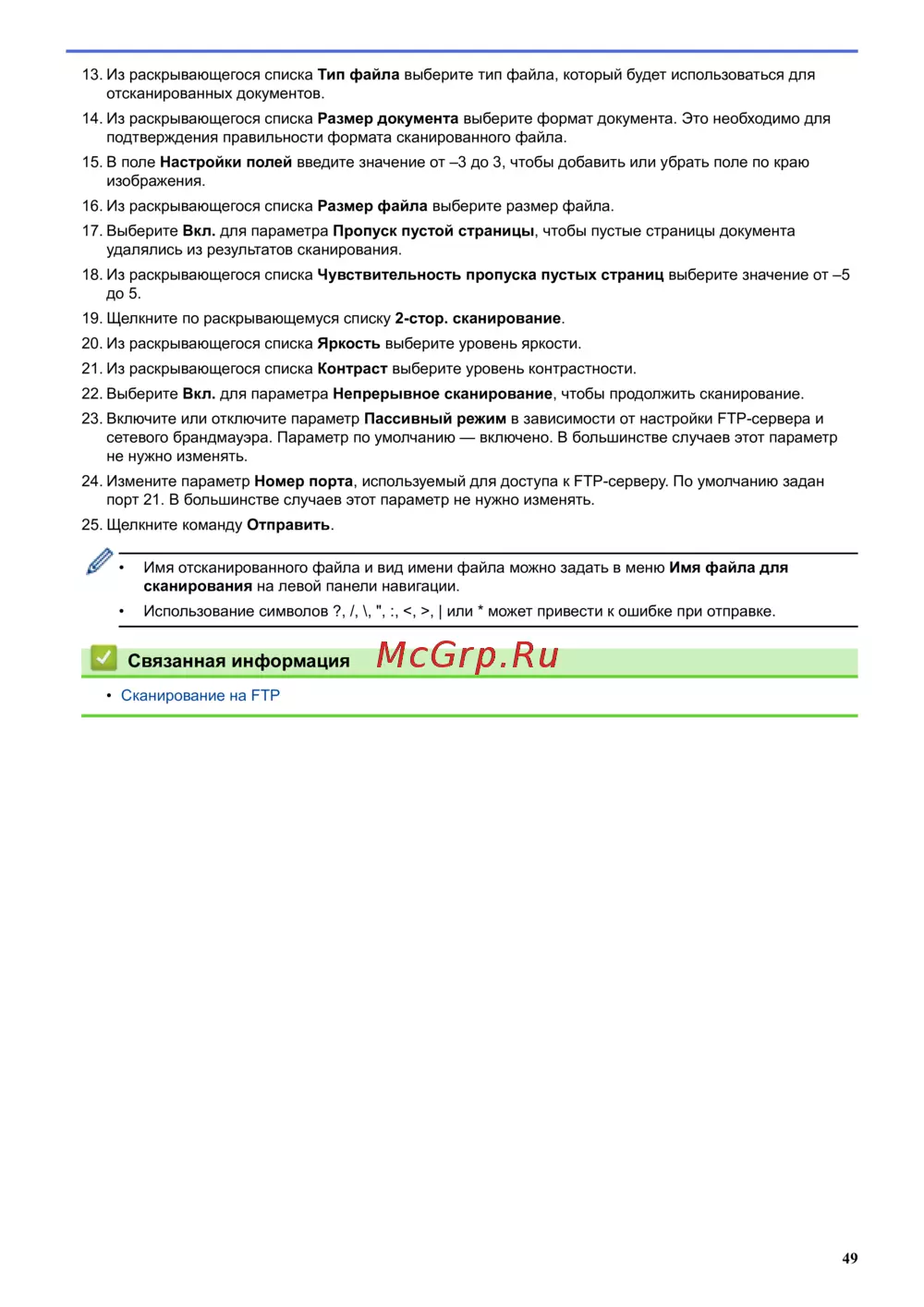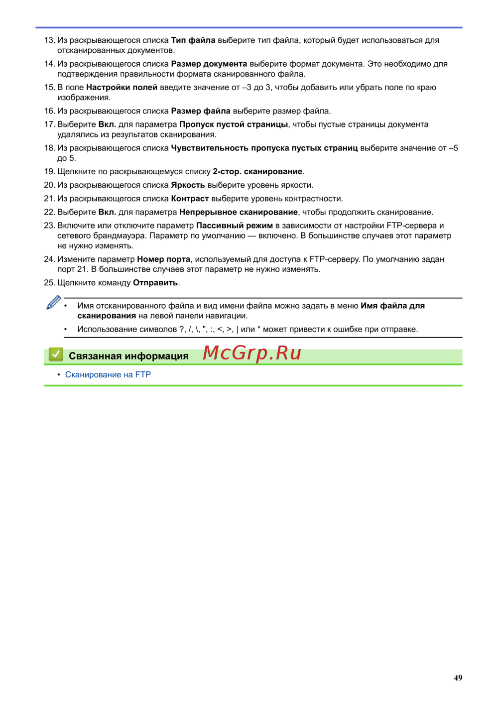 • Сканирование на FTP