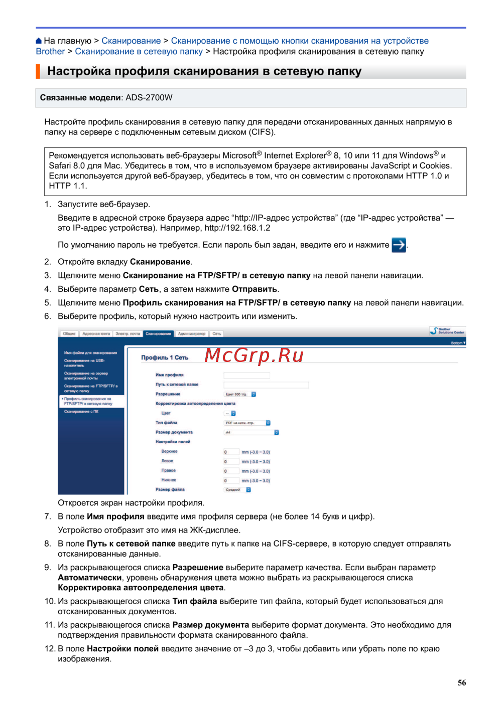 Brother ADS-2200 — настройка профиля сканирования в сетевую папку для устройств [60/215]