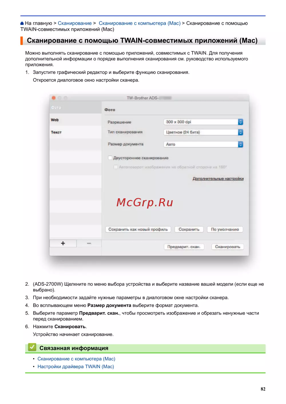 Brother ADS-2200 — сканирование с компьютера на Mac с использованием TWAIN-приложений [86/215]