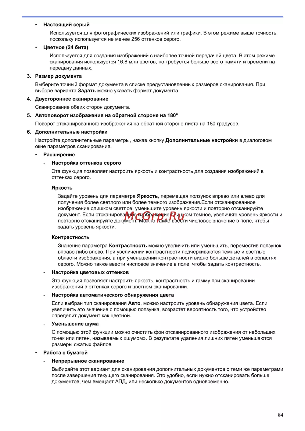 Узнайте о различных режимах сканирования, настройках яркости и контрастности, а также о функциях двустороннего сканирования и уменьшения шума для качественных изображений.