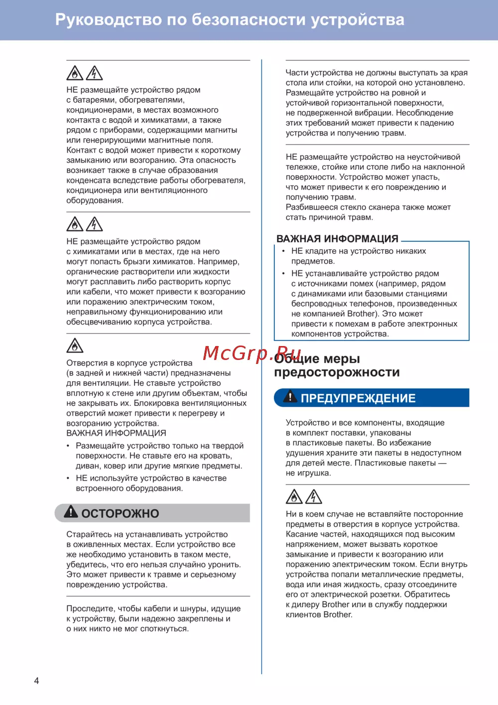 Brother ADS-2200 — руководство по безопасности устройства: важные рекомендации [4/11]