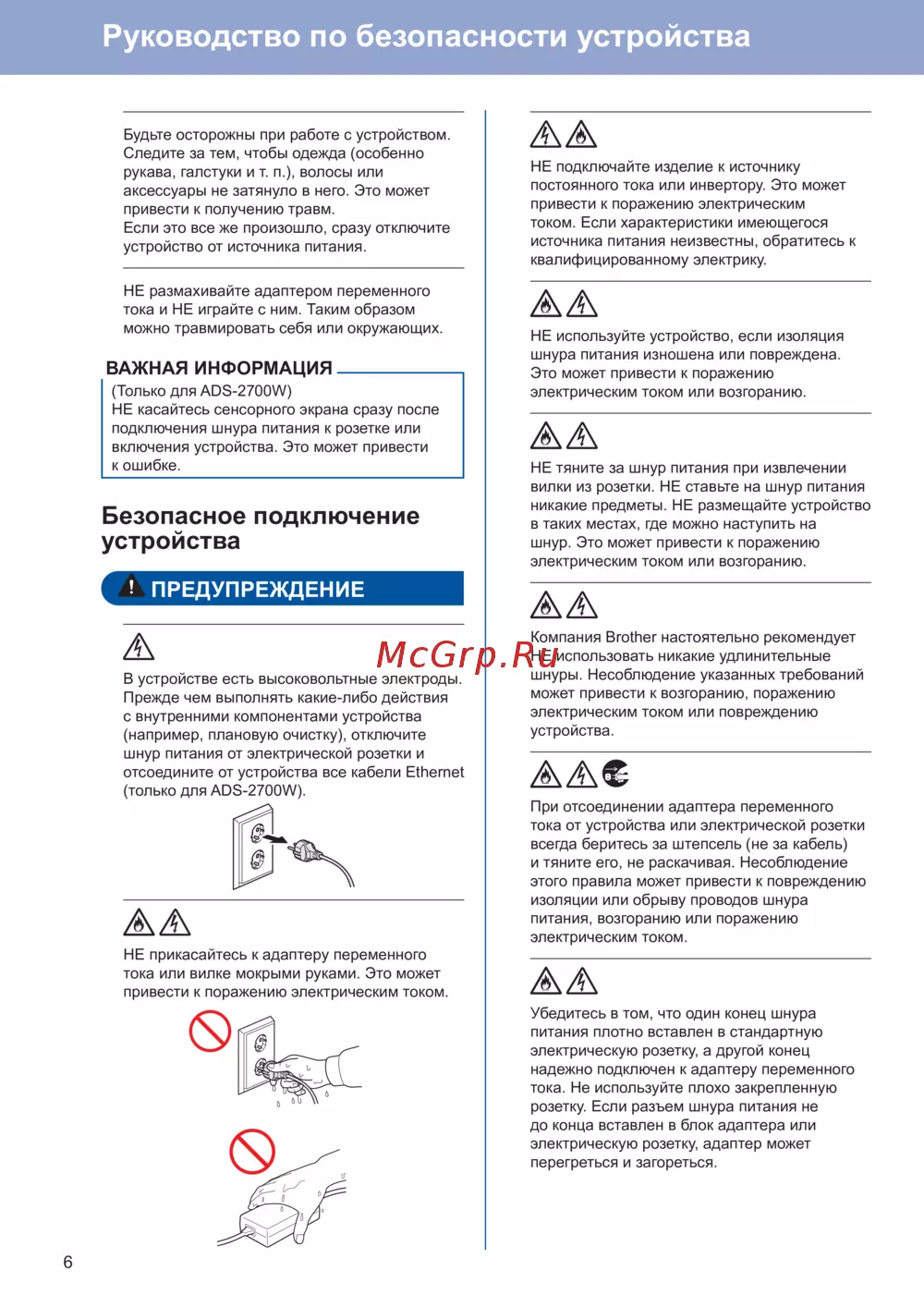 Brother ADS-2600WeРуководство по безопасности устройства -