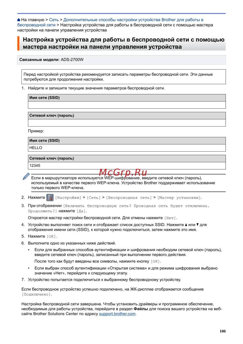 Brother ADS-2700W — настройка устройства для работы в беспроводной сети [104/215]