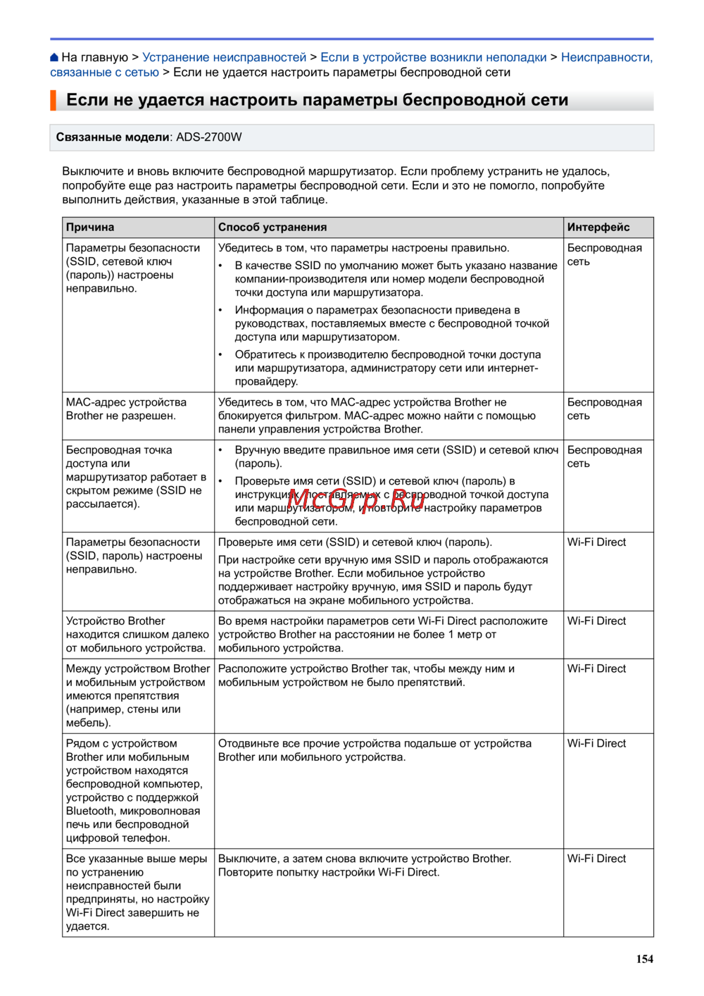 Brother ADS-2700W — устранение неполадок беспроводной сети: советы и рекомендации [158/215]