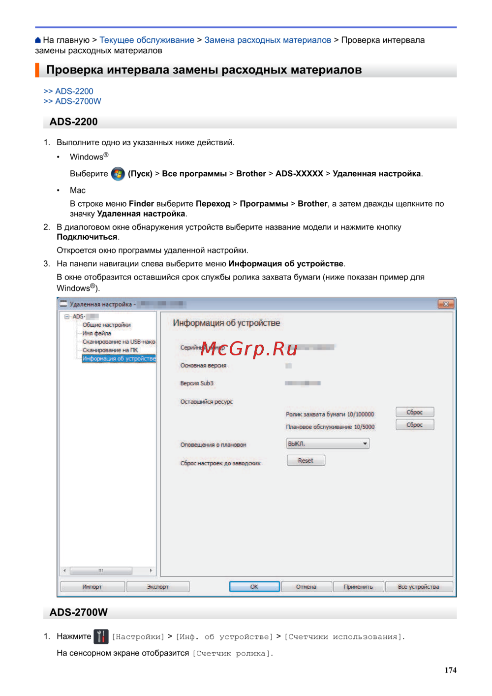 Brother ADS-2700W — проверка интервала замены расходных материалов для устройств [178/215]