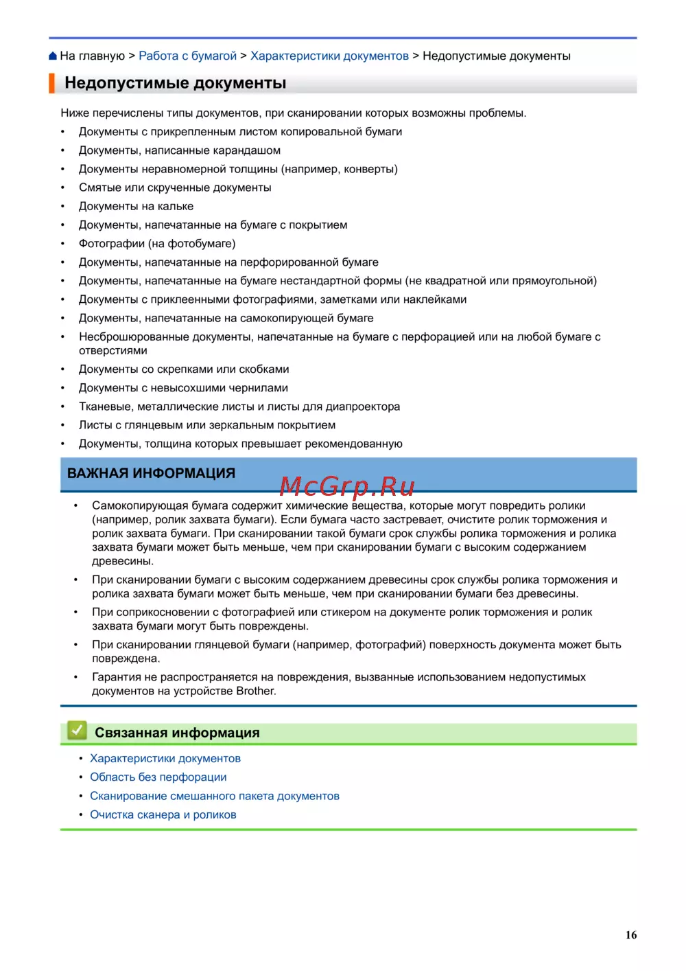 Brother ADS-2700W — недопустимые документы для сканирования: что нужно знать [20/215]