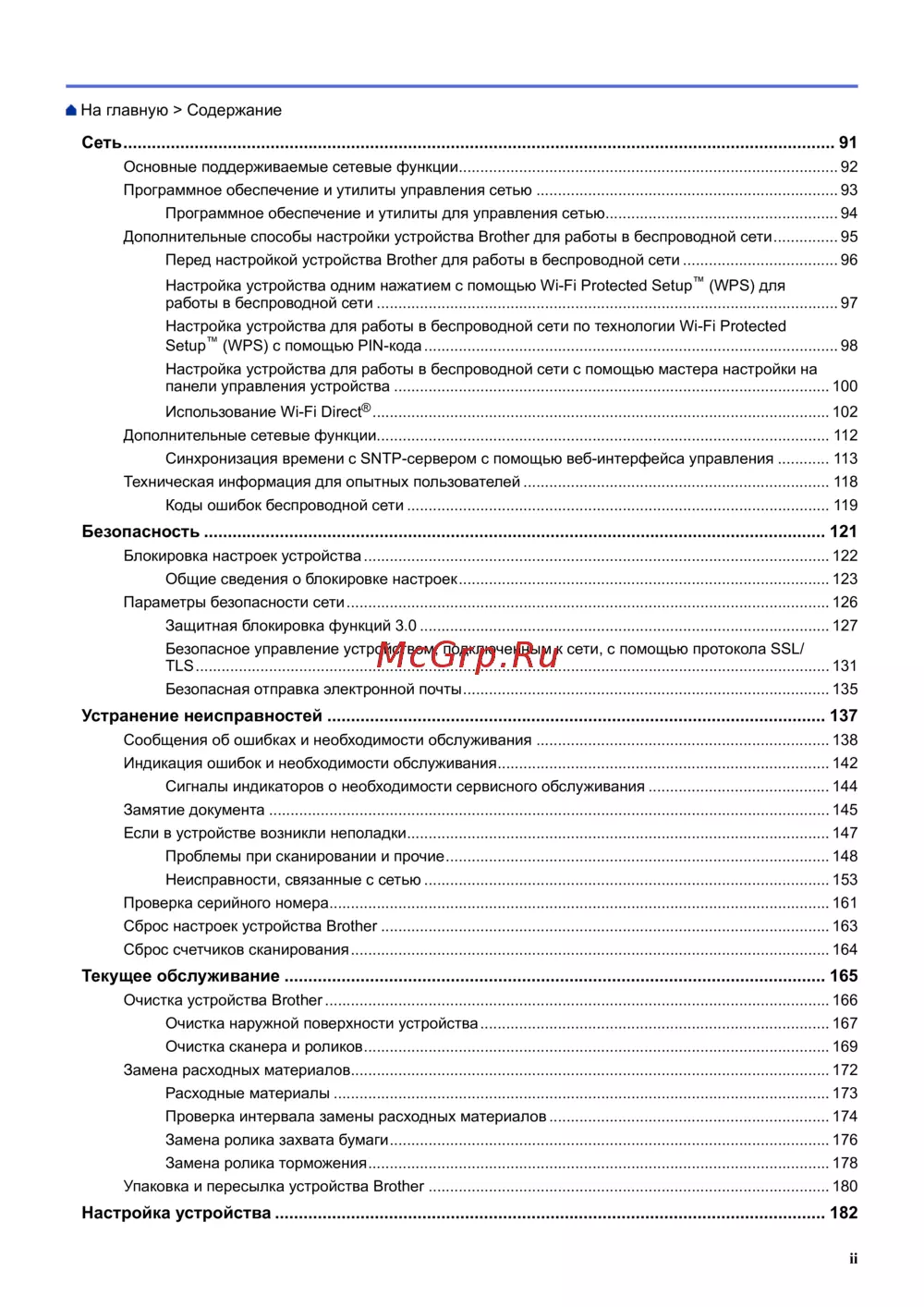 Сброс настроек устройства Brother ........................................................................................................ 163