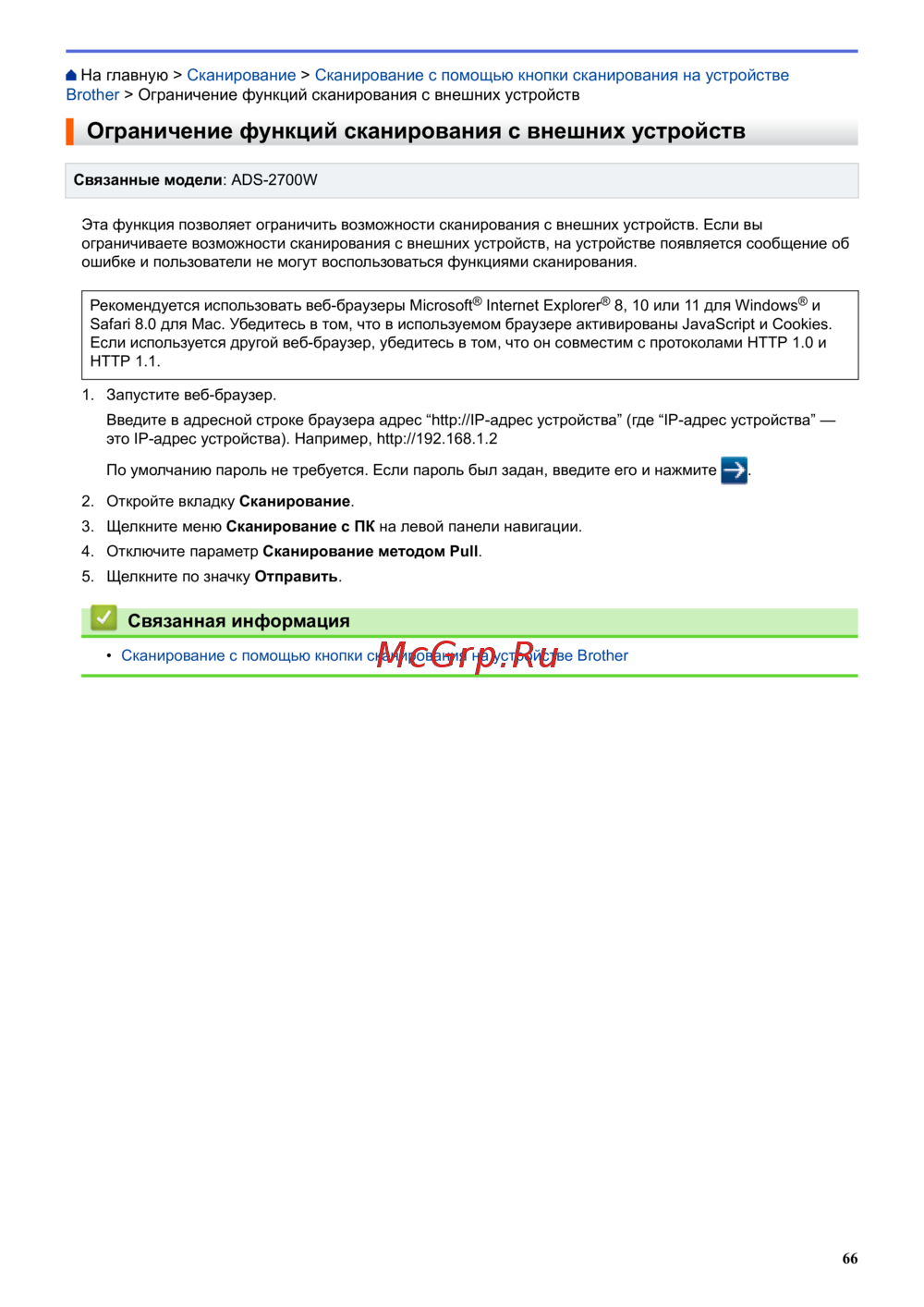 Brother ADS-2700W — ограничение функций сканирования с внешних устройств: руководство [70/215]