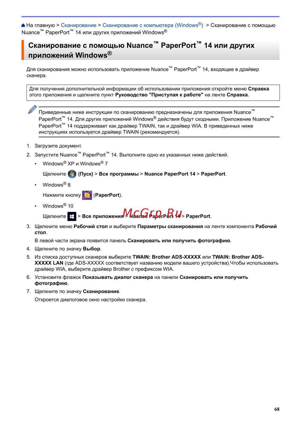 Приведенные ниже инструкции по сканированию предназначены для приложения Nuance