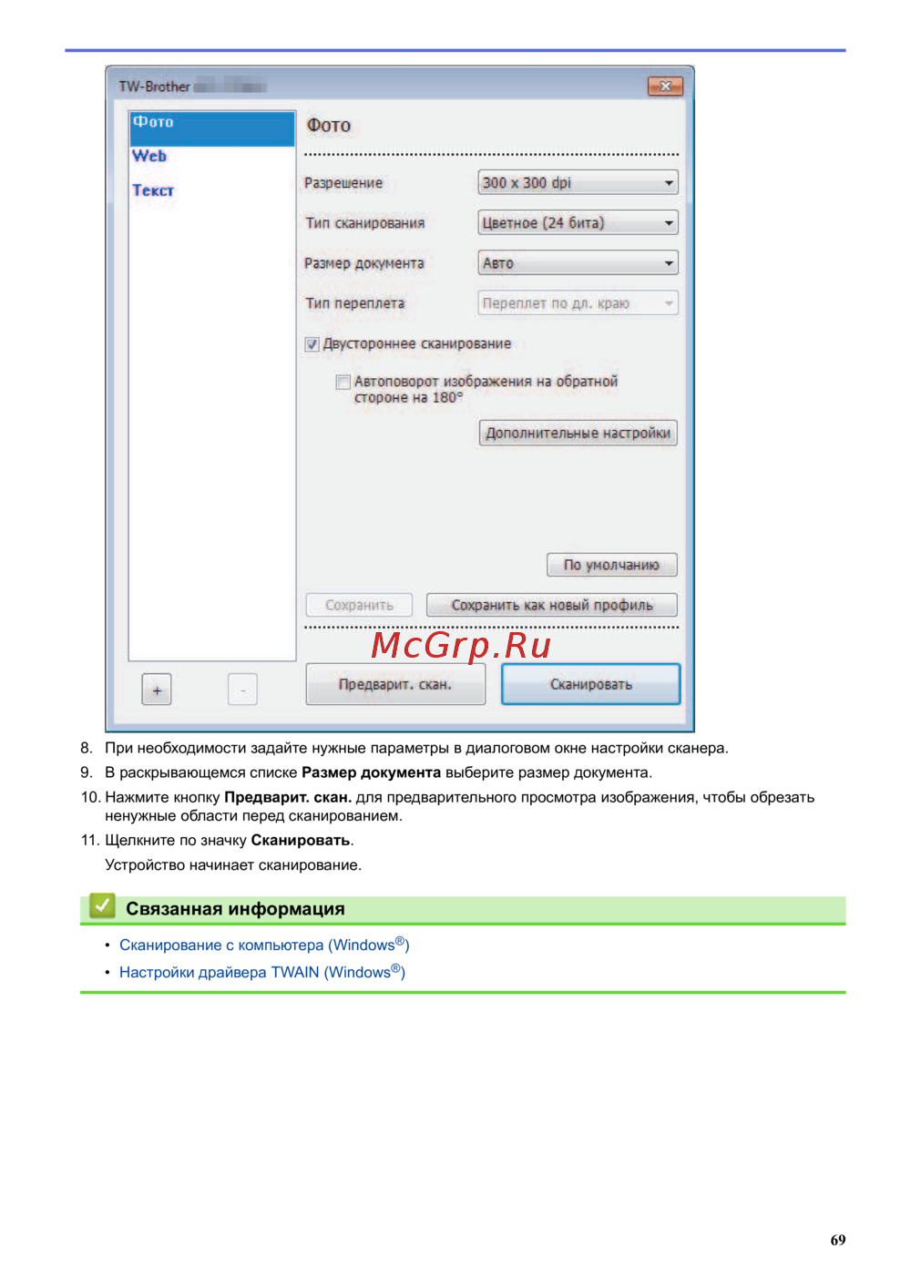 • Настройки драйвера TWAIN (Windows