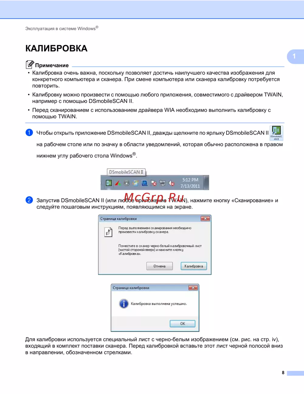 • Калибровку можно произвести с помощью любого приложения, совместимого с драйвером TWAIN,