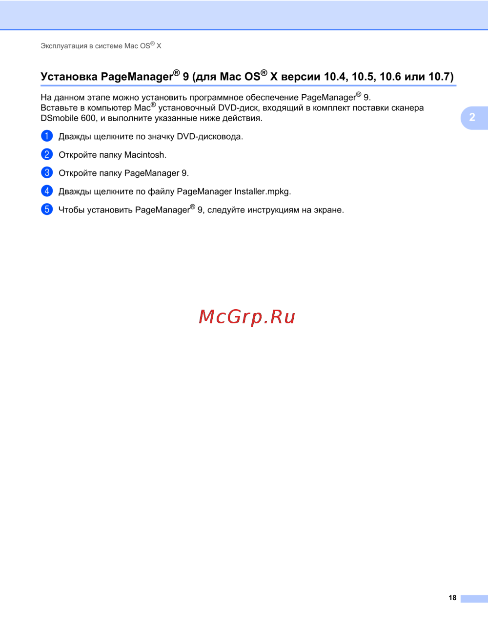 ![Brother DSmobile 600 [26/44] Установка pagemanager 9 для mac os x версии 10 10 10 или 10](/views2/1471399/page26/bg1a.png)