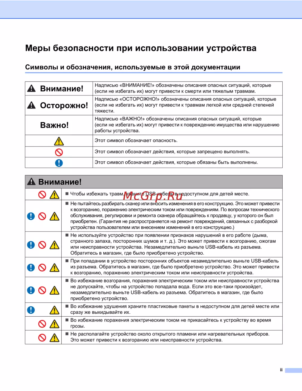 Brother DSmobile 600 — безопасность использования сканера: инструкции и предупреждения [3/44]