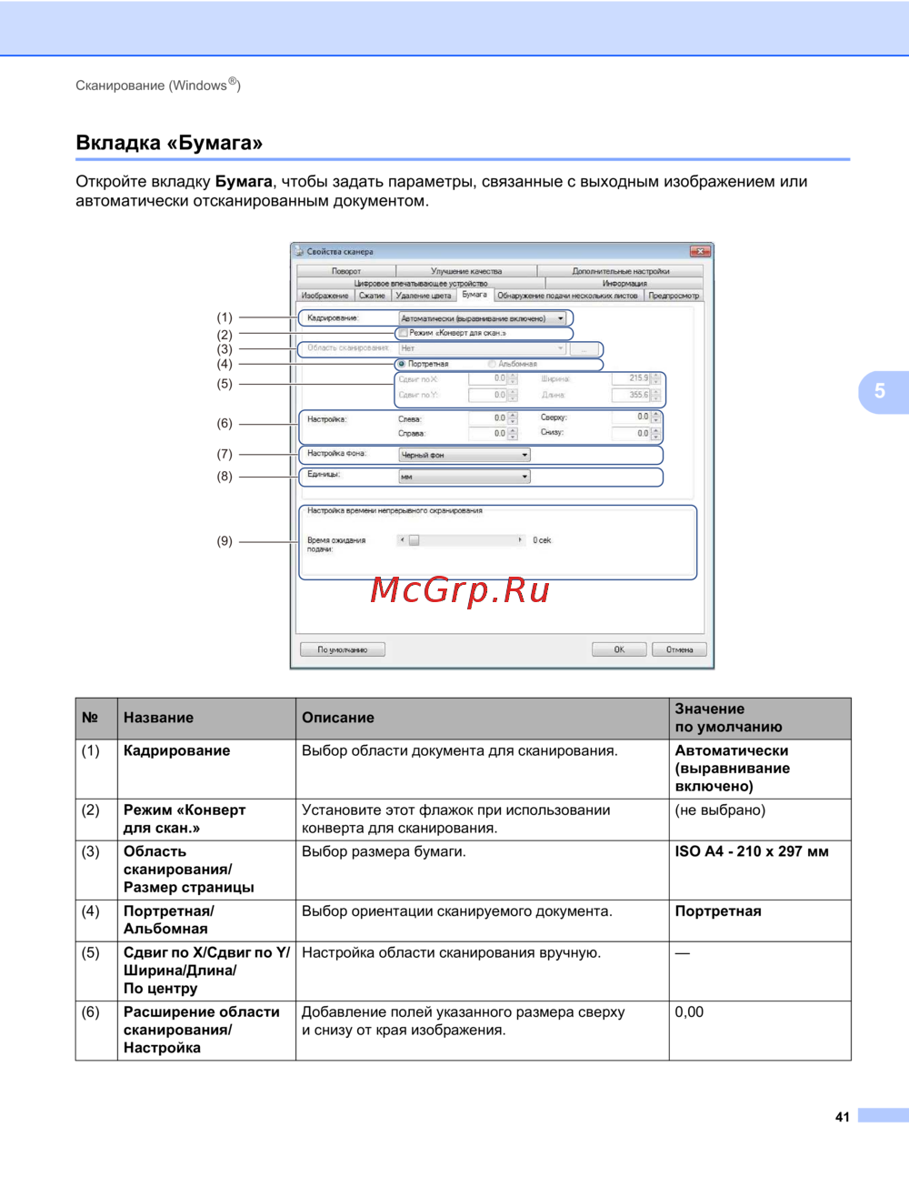 ![Brother PDS-5000 [45/138] Откройте вкладку бумага чтобы задать параметры связанные с выходным изображением или автоматически отсканированным документом](/views2/1471400/page45/bg2d.png)