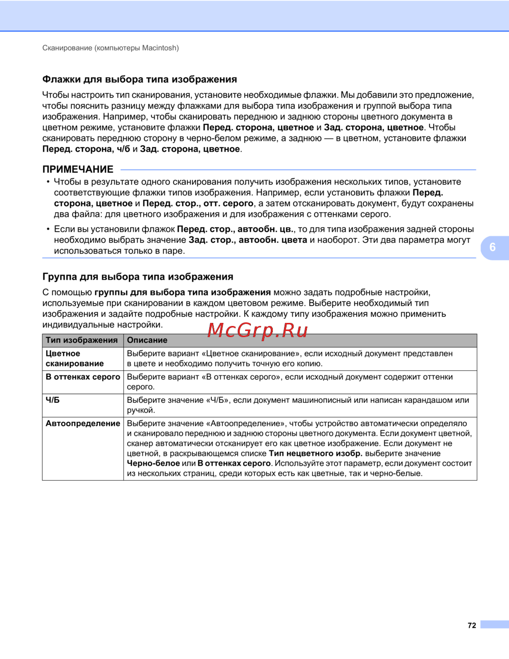 используемые при сканировании в каждом цветовом режиме. Выберите необходимый тип