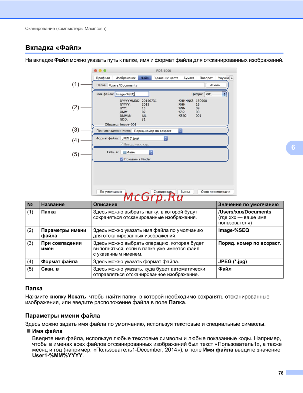 Brother PDS-5000 — настройки сканирования на компьютерах Macintosh [82/138]