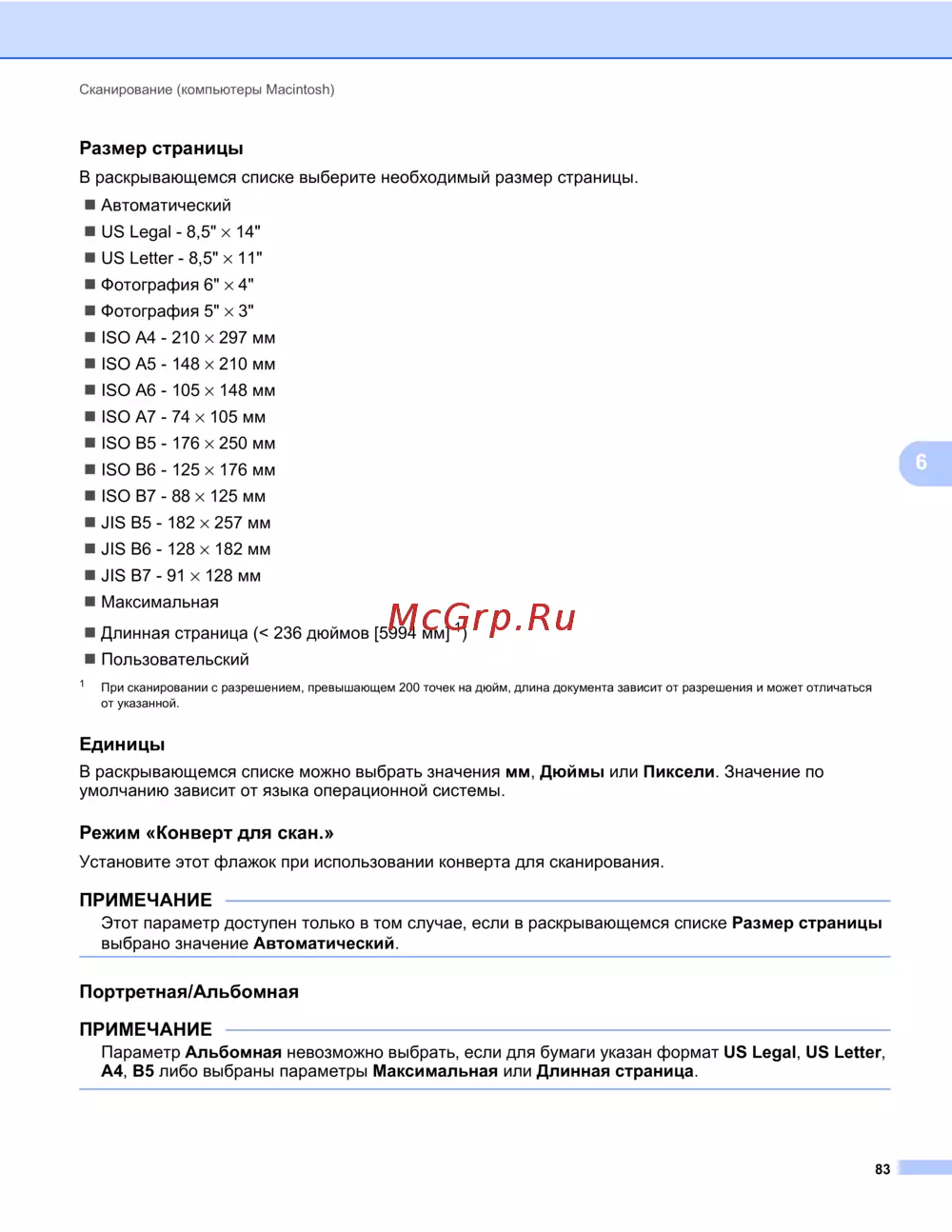 Длинная страница (< 236 дюймов [5994 мм]