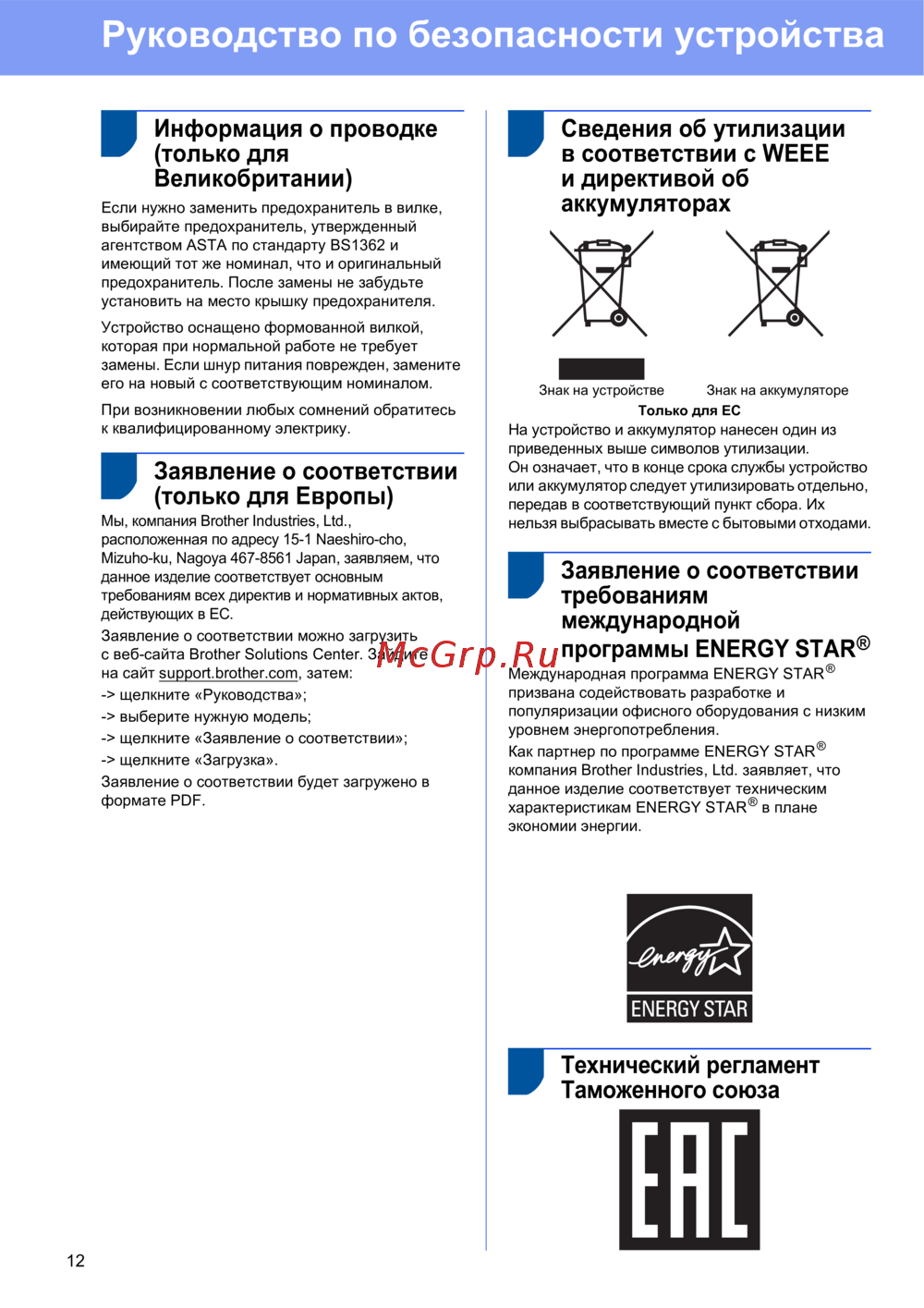 - Заявление о соответствии только для европы p.12