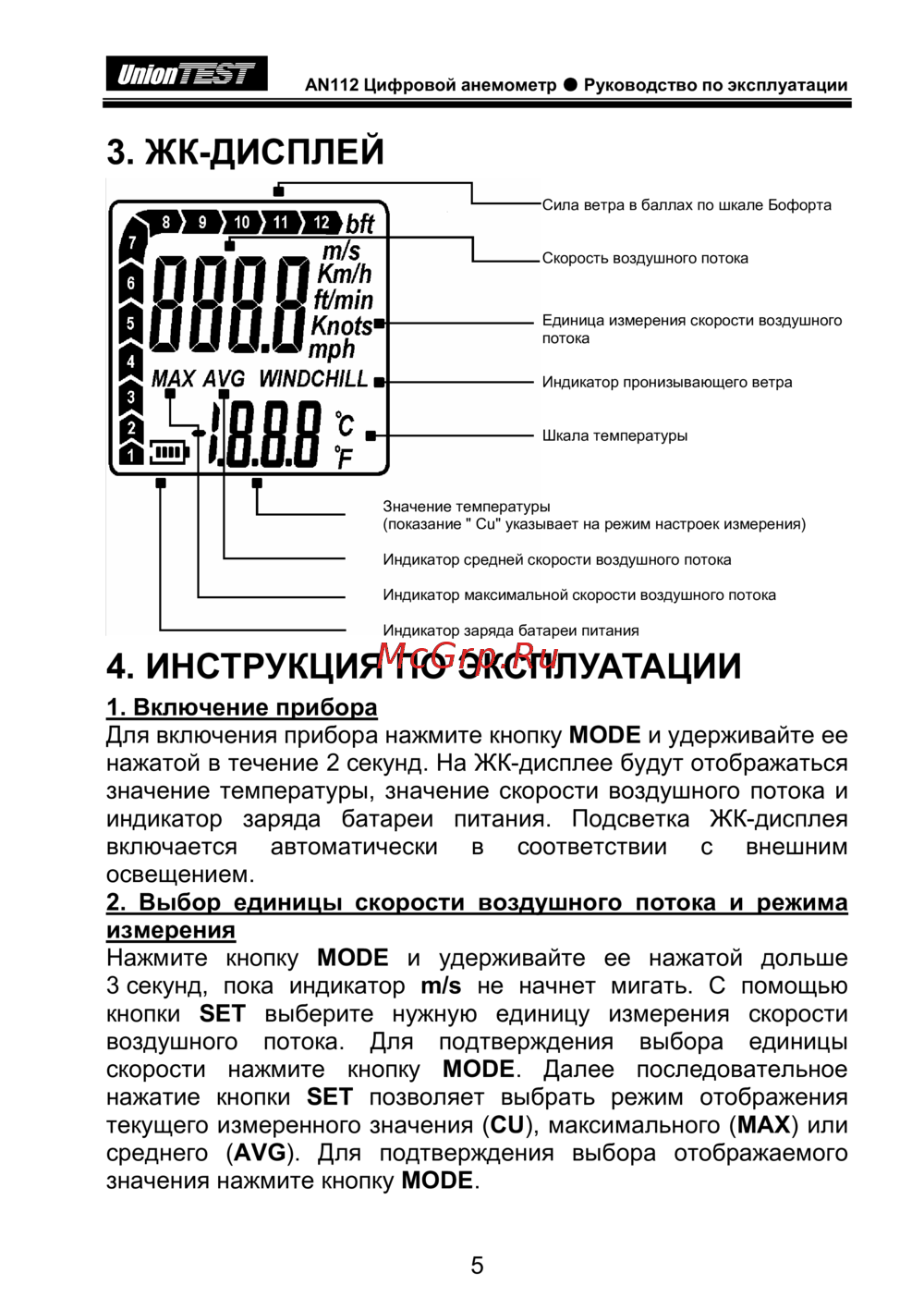 - An112 цифровой анемометр руководство по эксплуатации p.6