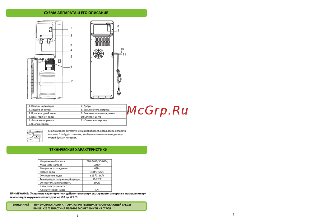 - Примечание указанные характеристики действительны при эксплуатации аппарата в помещении при температуре окружающего воздуха от 10 до 25 p.2