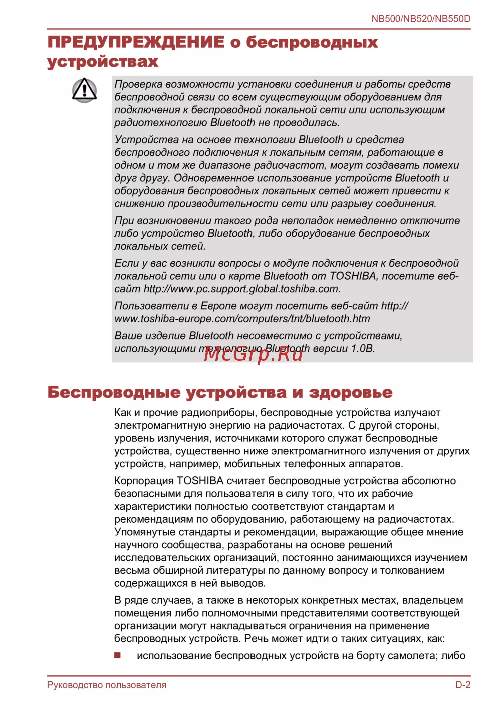 Toshiba NB520-10E — предупреждение о беспроводных устройствах и их совместимости [141/163]