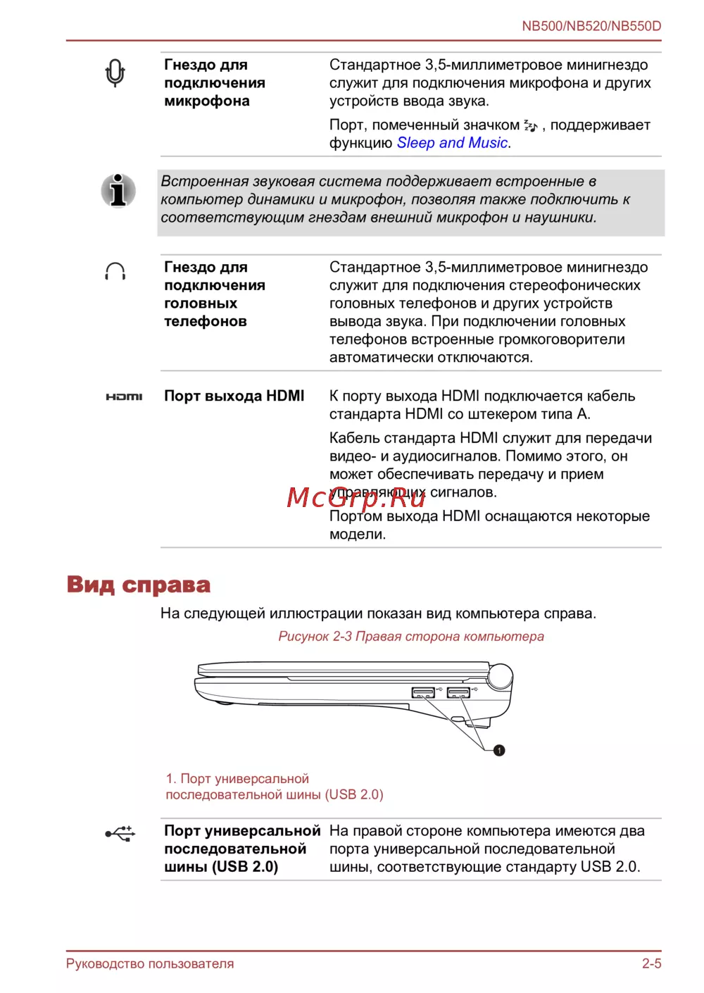 Toshiba NB520-10E — подключение микрофонов и наушников: гнезда и порты [32/163]