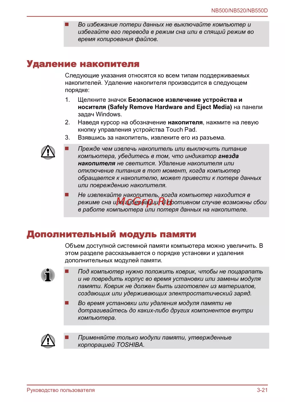 Toshiba NB520-10E — правила безопасного удаления накопителей и установки памяти [61/163]