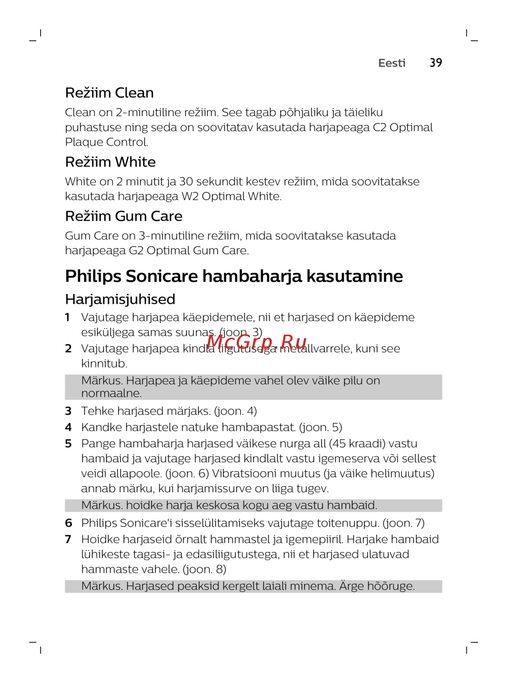 Philips HX8424/32 — hambaharjade erinevad režiimid ja kasutusjuhised [39/236]