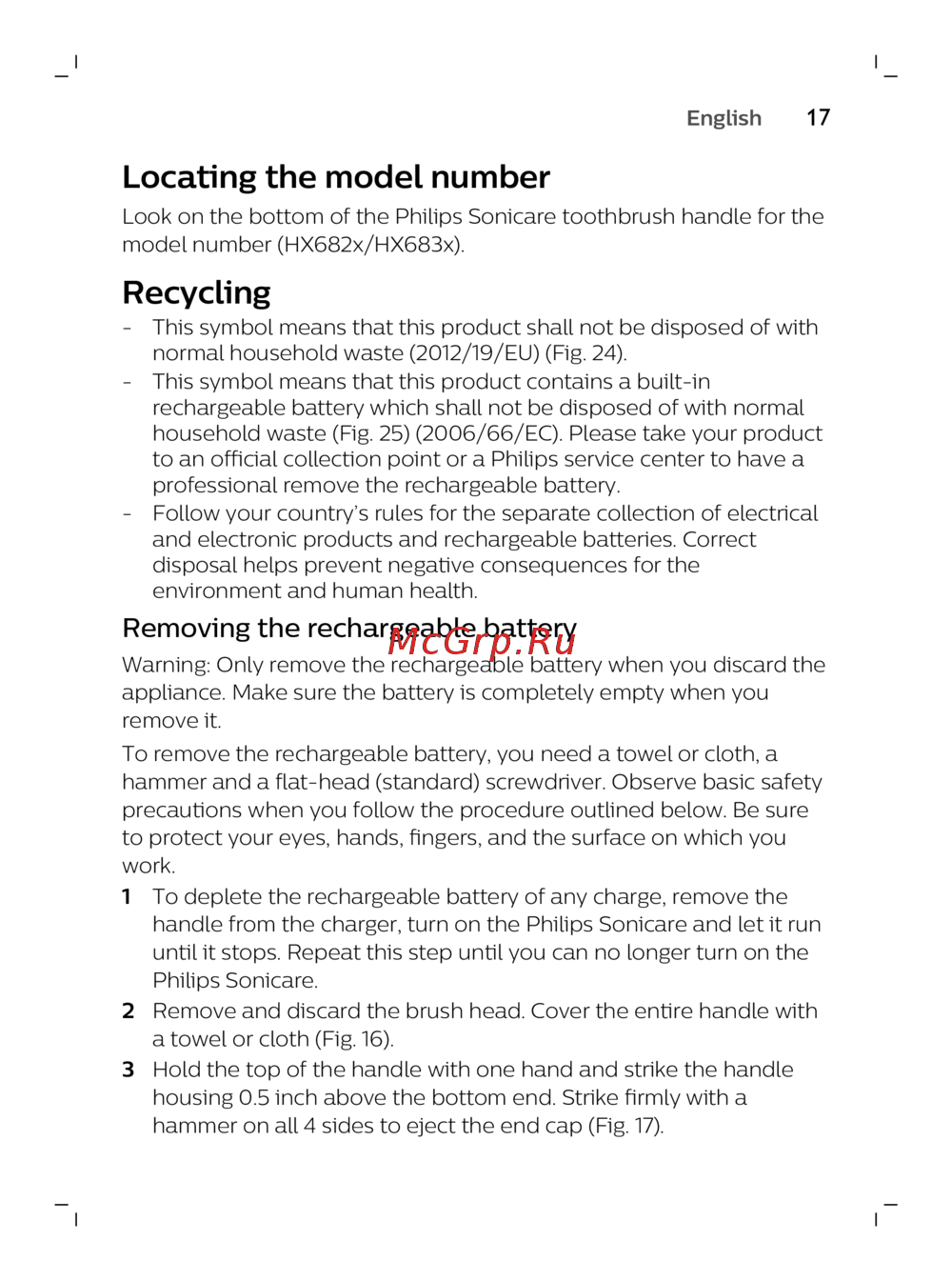 Philips HX8424/39 [17/236] Removing the rechargeable battery