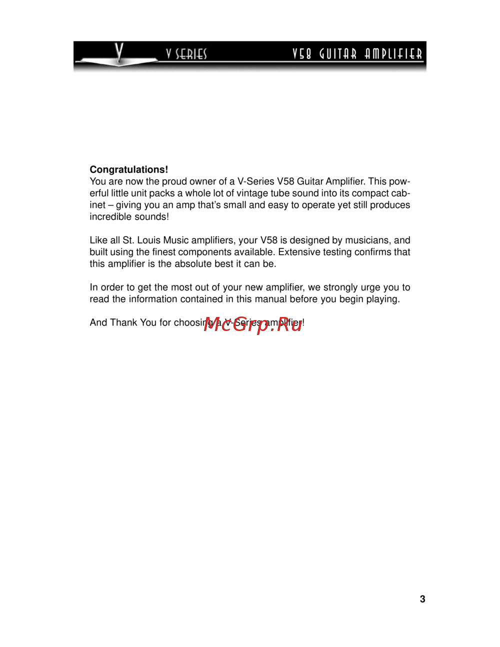 Like all St. Louis Music amplifiers, your V58 is designed by musicians, and