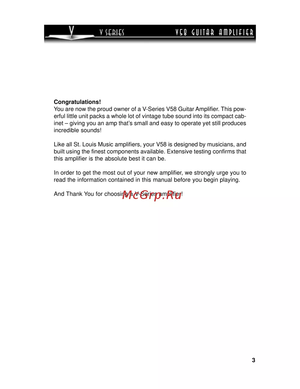 You are now the proud owner of a V-Series V58 Guitar Amplifier. This pow-