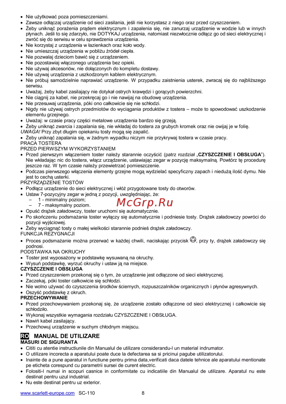 Scarlett SC-110 — bezpieczne użytkowanie tostera: wskazówki i zasady [8/18]