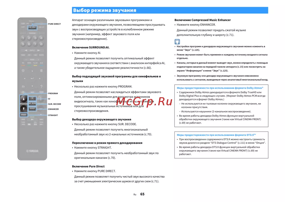 ![Yamaha CX-A5200 [65/179] Выбор режима звучания](/views2/1486843/page65/bg41.png)