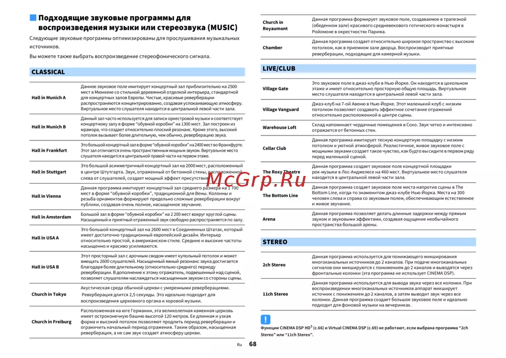 Yamaha CX-A5200 [68/179] Следующие звуковые программы оптимизированы для прослушивания музыкальных