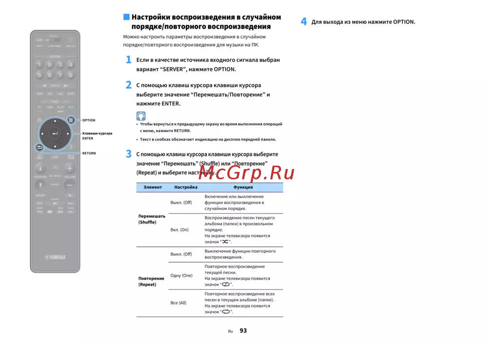 Yamaha CX-A5200 [93/179] Настройки воспроизведения в случайном порядке повторного воспроизведения