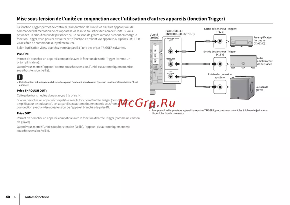 Yamaha MX-A5200 [40/152] Mise sous tension de l unité en conjonction avec l utilisation d autres appareils fonction trigger