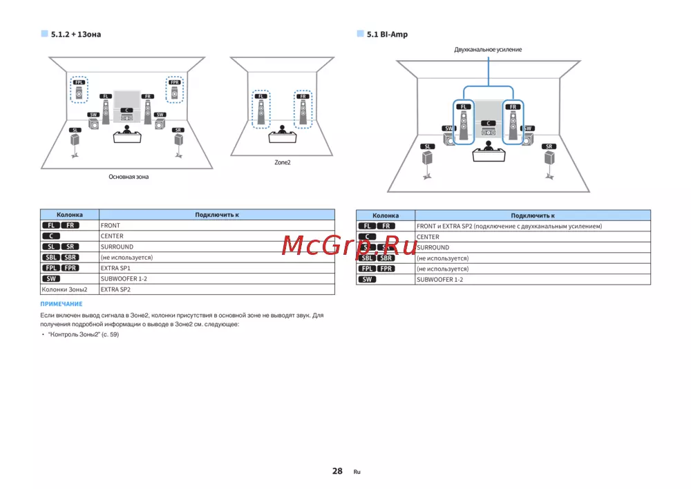 Если включен вывод сигнала в Зоне2, колонки присутствия в основной зоне не выводят звук. Для