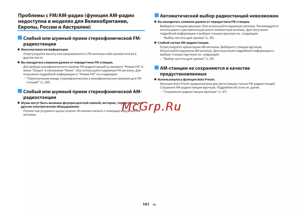 Yamaha RX-A780 [161/201] Слабый или шумный прием стереофонической fm радиостанции