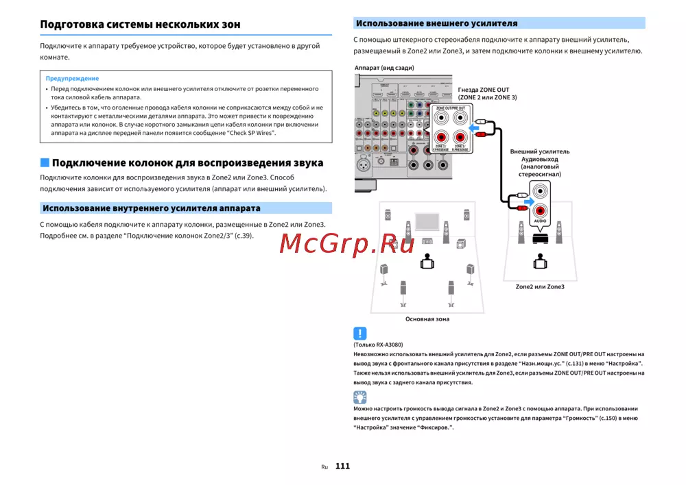 Yamaha RX-A3080 — подключение колонок и внешнего усилителя в многозонной системе [111/192]