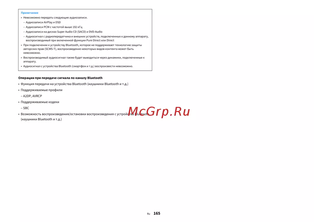 Yamaha RX-A3080 — передача сигнала по Bluetooth: функции и ограничения [165/192]