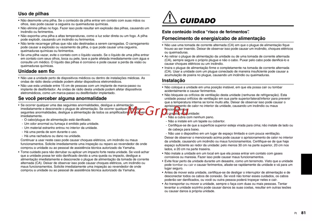 comprou a unidade ou ao pessoal de assistência técnica autorizado da Yamaha.
