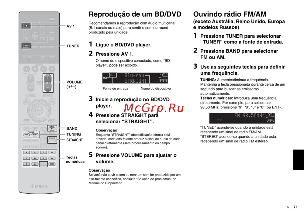 Yamaha HTR-2071Краткое руководство по началу работы -