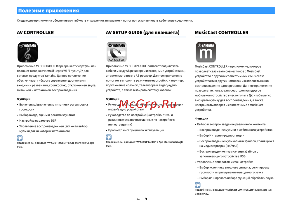 Подробнее см. в разделе “MusicCast CONTROLLER” в App Store или