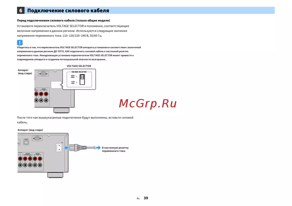 Yamaha RX-A870 [39/162] Подключение силового кабеля