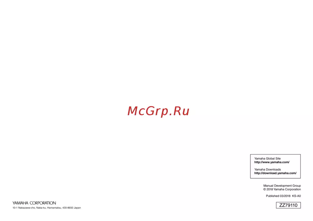 - В содержании данного руководства приведены последние на момент публикации технические характеристики см руководство пользователя на веб сайте yamaha для проверки технических характеристик отличных от описанных выше и получения последней информации об аппарате p.121