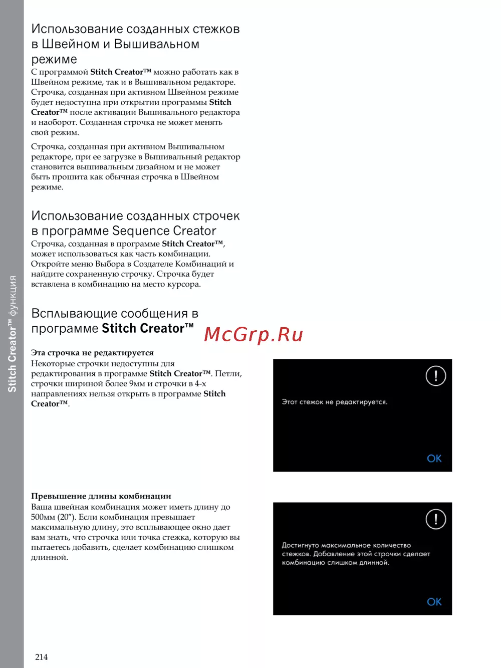 - Всплывающие сообщения в швейном режиме 16 p.8